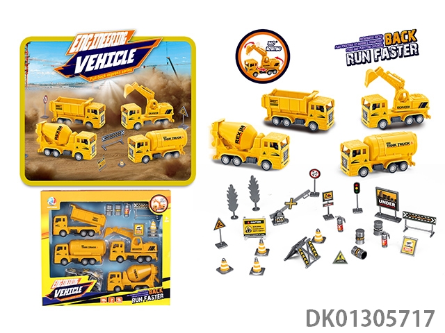 4款回力仿真工程车配路标