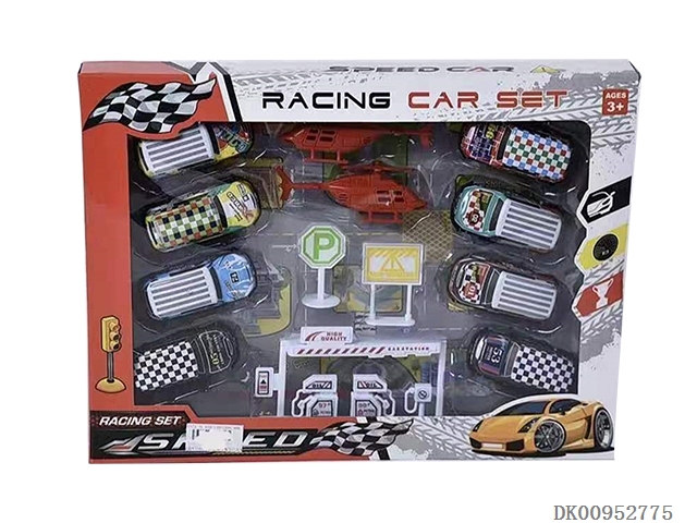 8只回力铁制车配2只直升机路标加油站