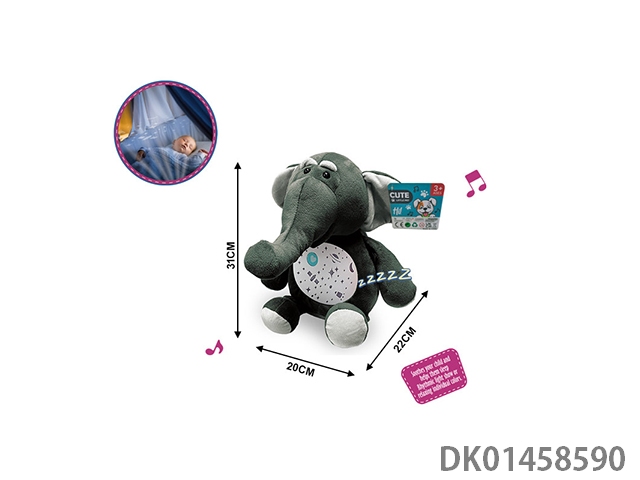 婴儿毛绒安抚公仔(大象)音乐,灯光投影无包 3粒AAA