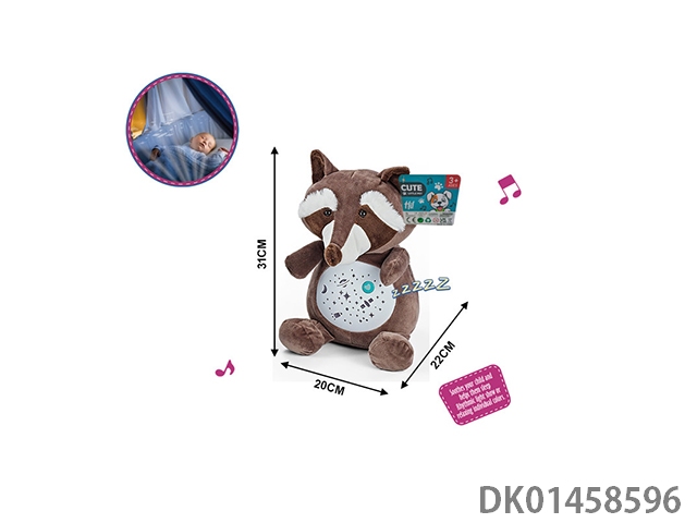 婴儿毛绒安抚公仔(浣熊)音乐,灯光投影无包 3粒AAA