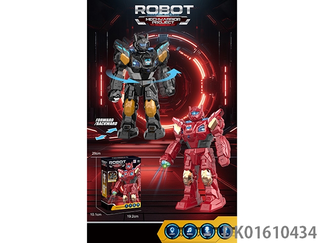 电动声光机器人大号(13.5英寸),手臂摇摆,带灯光,带音乐,附带刀盾,刀盾均可拆卸(2色混装)