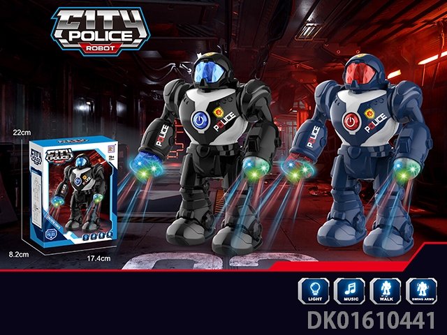 警察电动声光机器人,带灯光音乐,电动直行(2色混装)