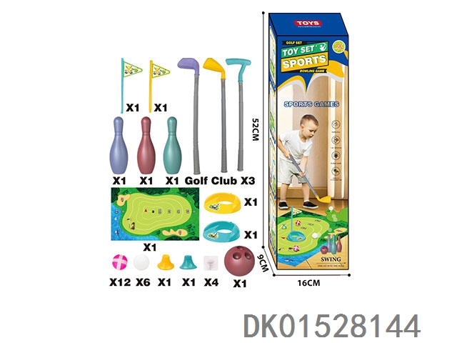 高尔夫球杆3支+球洞 旗 球位 2套 球6粒 +保龄瓶3个+球1个