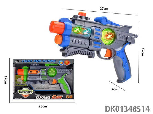 电动枪转动炫彩灯光声音太空枪(不包3粒5号电池)