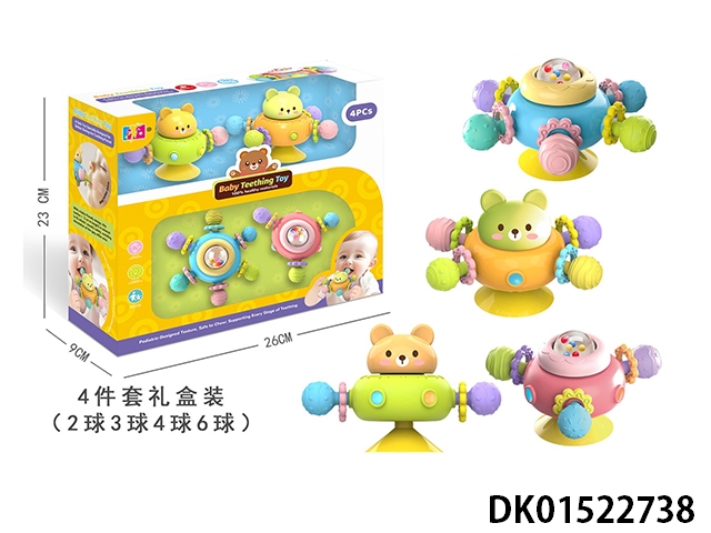 4件套吸盘转转乐磨牙球礼盒装(2个熊,2个珠)婴儿玩具牙胶磨牙玩具婴儿啃咬玩具