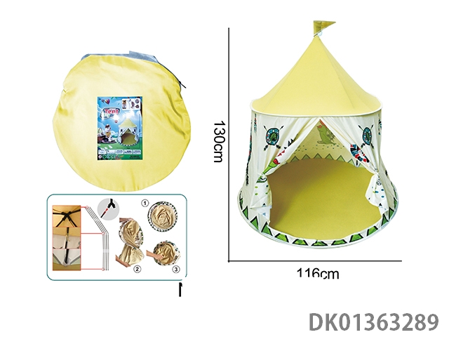 男孩黄色印第安帐篷