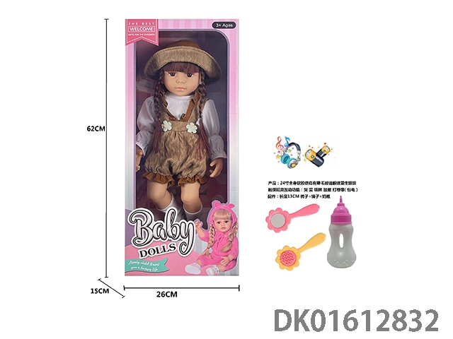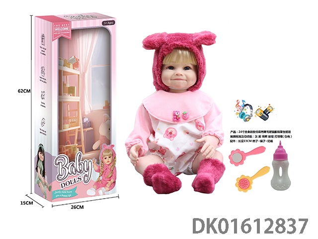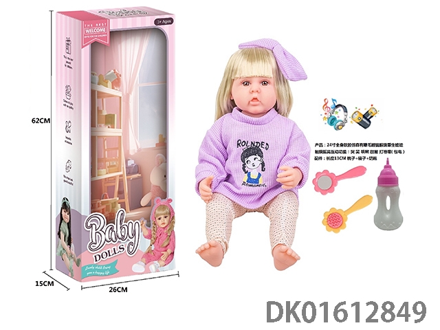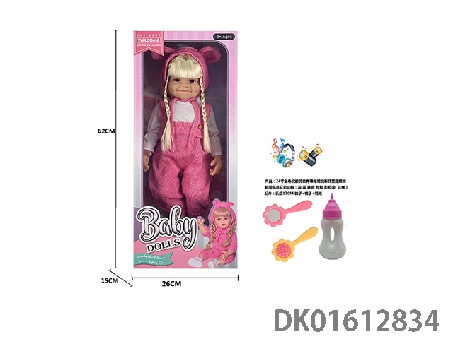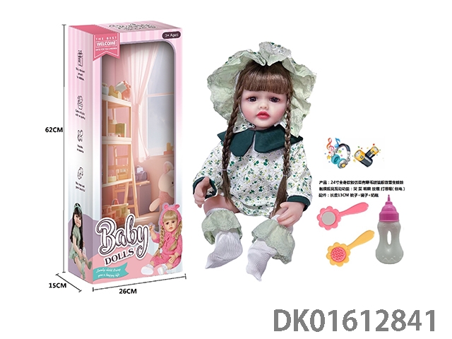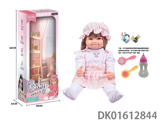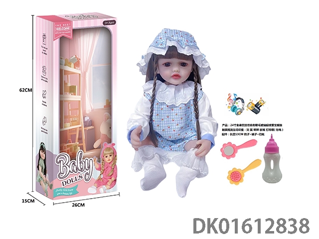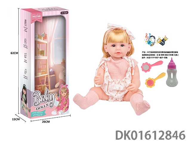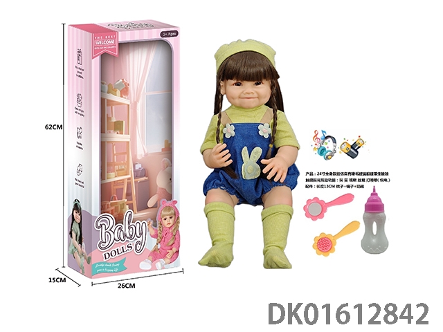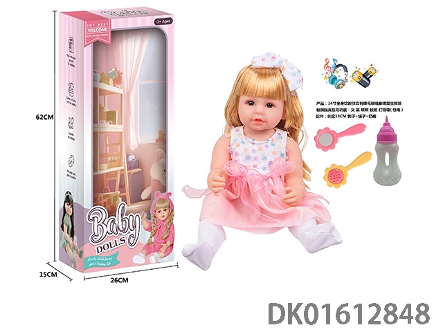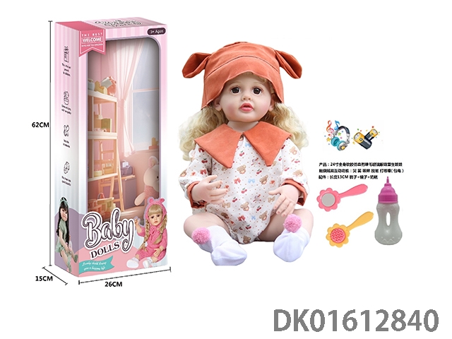 24寸全身软胶仿真有睫毛玻璃眼珠重生娃娃带梳子镜子奶瓶(触摸摇晃互动功能:哭 笑 咳嗽 放屁 打喷嚏)