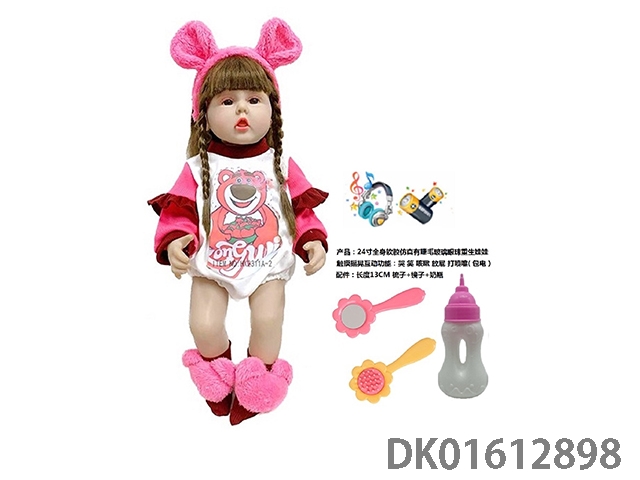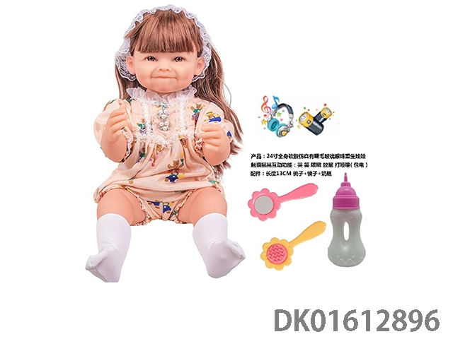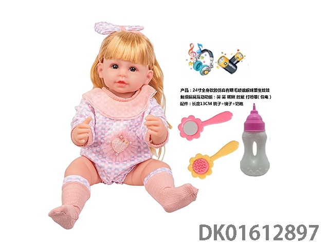 24寸全身软胶仿真有睫毛玻璃眼珠重生娃娃带梳子镜子奶瓶(触摸摇晃互动功能:哭 笑 咳嗽 放屁 打喷嚏)