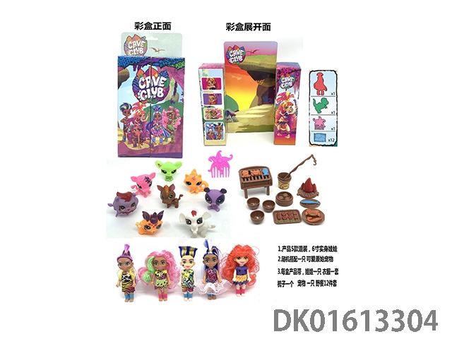6寸实身CAVE CLUB洞穴俱乐部娃娃带原始宠物+野餐套装+梳子 (5款混装)