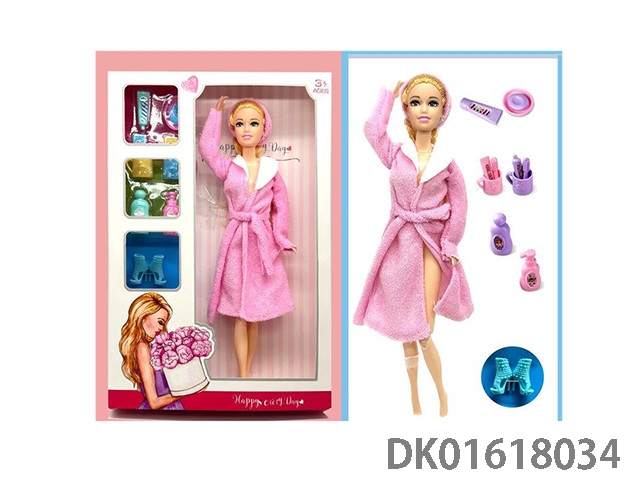 11.5寸13关节实身浴袍时装芭比娃娃+洗漱套装吸塑+鞋