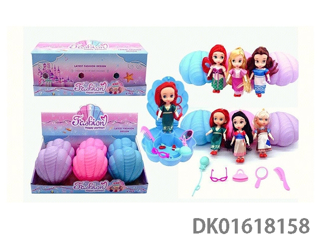 4.5寸6款混装迪士尼娃娃贝壳盒(娃娃可站立)+配件(6pcs)