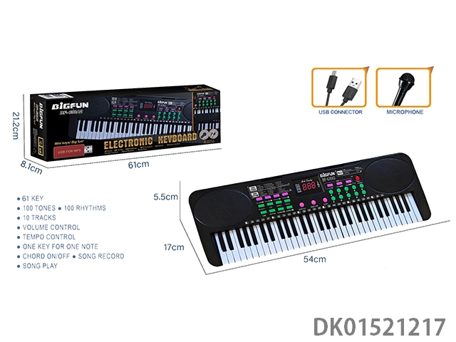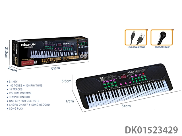 61键双喇叭电子琴黑色/无数码/带USB线/麦克风/卡泡沫/可插U盘