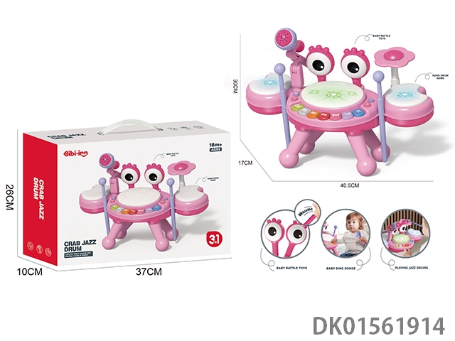 卡通益智启早教多功能螃蟹玩具爵士鼓(粉)