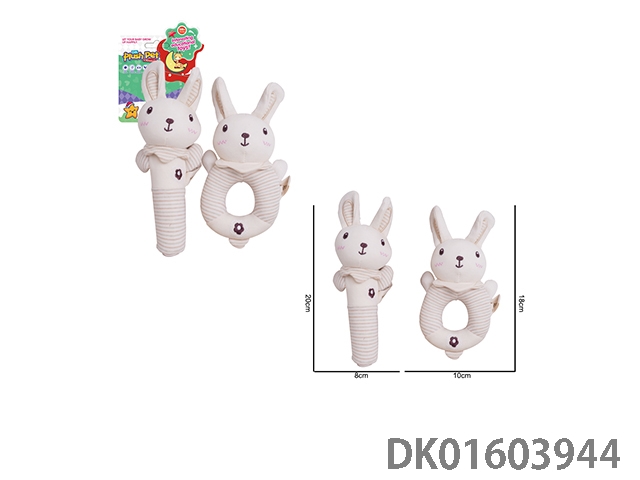 毛绒玩具 卡通婴儿启蒙 有机棉 圆手摇棒棒套装 兔子新