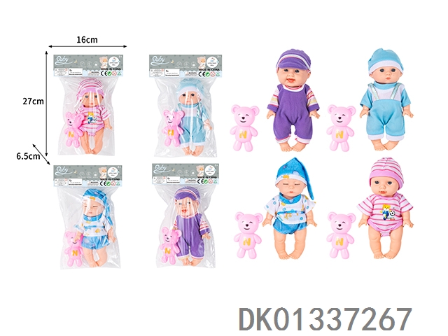 8寸搪胶身公仔仿真娃娃配小熊