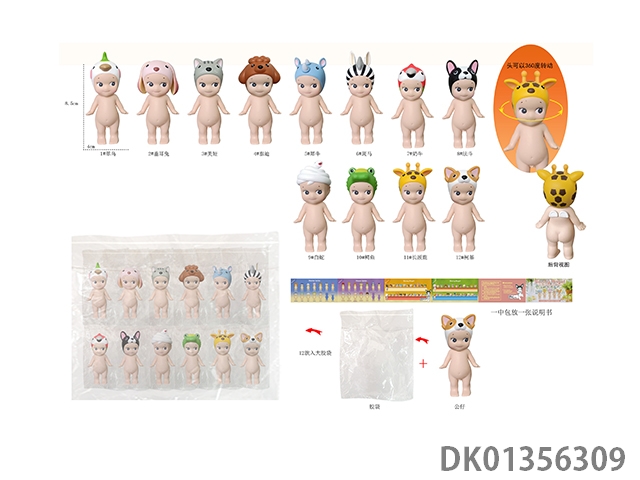 趴趴天使趴姿托脸二代动物系列手办12款,12pcs/盒