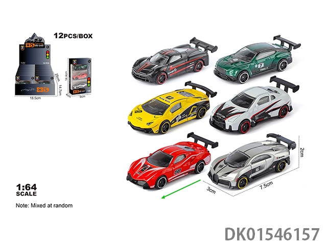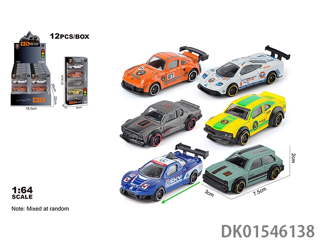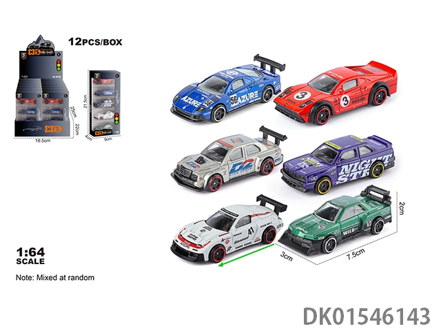 英文1:64压铸锌合金6只装车模 12盒/展示盒(6款随机混装)