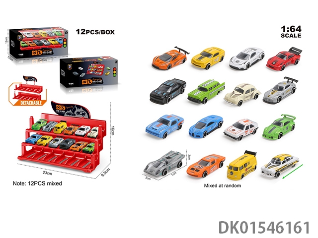 英文1:64压铸锌合金停车场车模 12只装(16款随机混装)