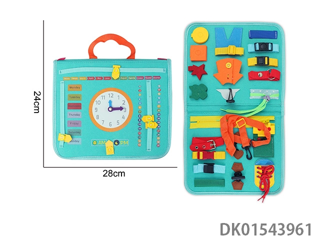 蒙氏儿童早教益智-毛毡单页蓝绿时间手提