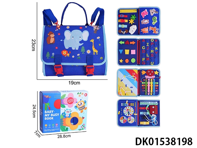 蒙氏儿童早教益智-毛毡背包蓝色5页野生动物忙碌版