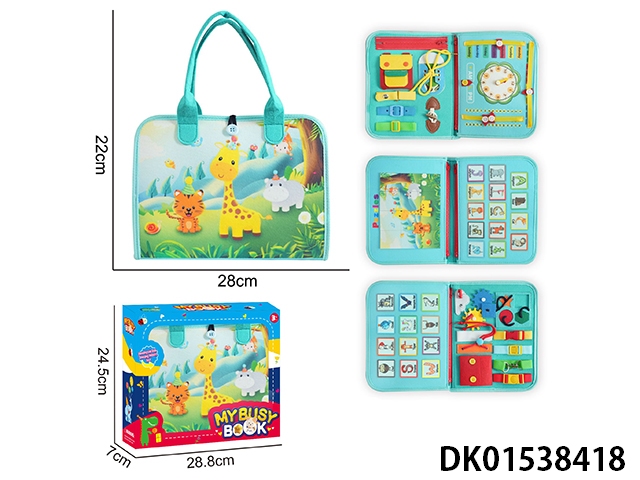蒙氏儿童早教益智-毛毡背包蓝色5页野生动物忙碌版