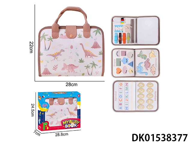 蒙氏儿童早教益智-毛毡卡其色4页恐龙忙碌板