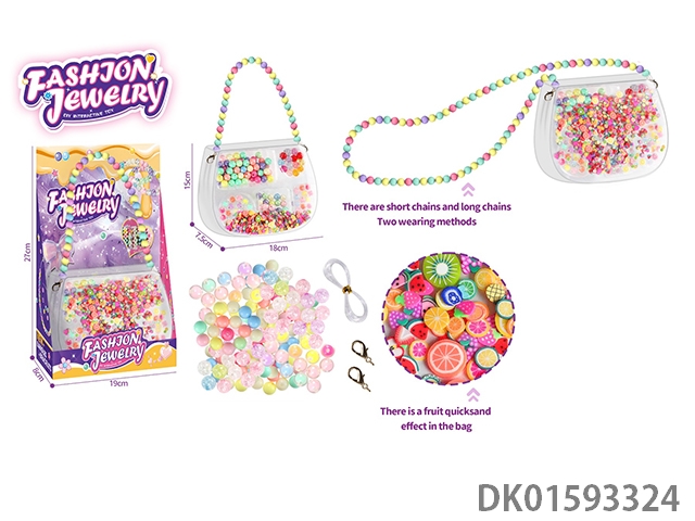 女孩过家家串珠珠子饰品包 手工袋 水果片流沙 3合1斜挎包
