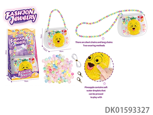 女孩过家家串珠珠子饰品包 手工袋 创意按压解压 菠萝水珠捏捏乐 3合1斜挎包