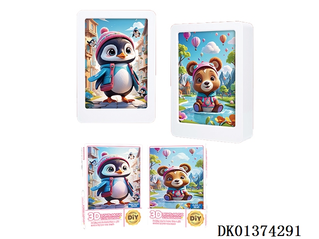 DIY系列3D氛围夜灯音乐立体画(可爱企鹅+欢乐小熊2款混装)