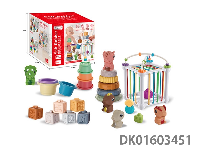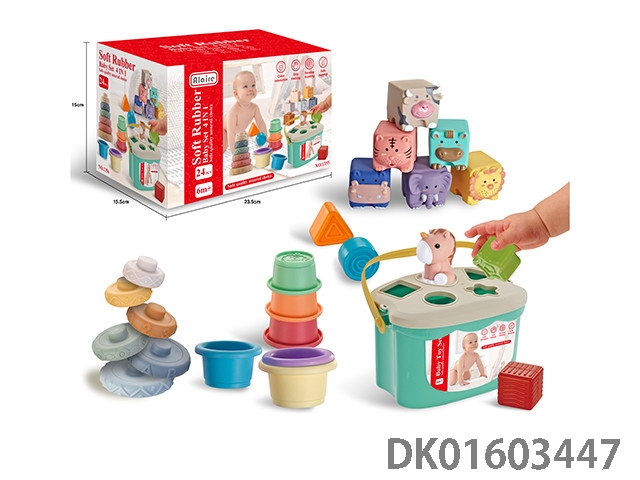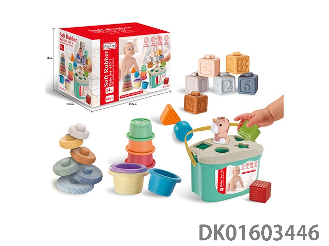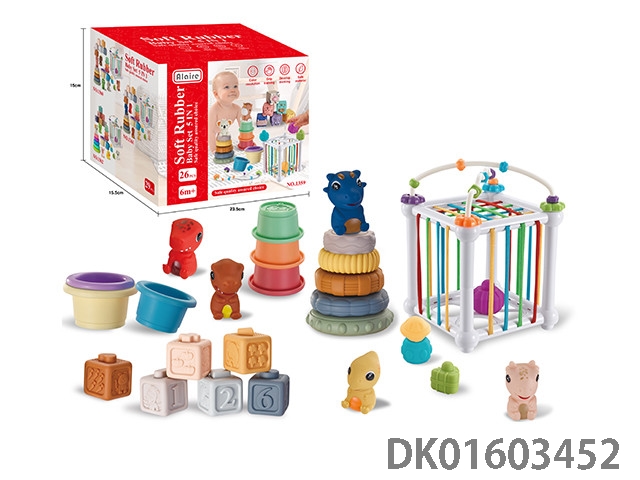 5合一浴室戏水叠叠乐+趣味塞塞乐篮子+软胶小积木+拼插小恐龙手偶+叠叠乐组合