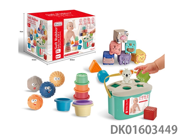 4合一浴室戏水塞塞乐桶装+圆饼叠叠乐+拼插考拉+数字软胶积木组合