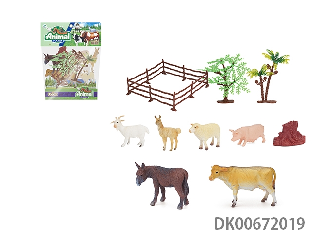 6只3-5寸农场带树动物套装