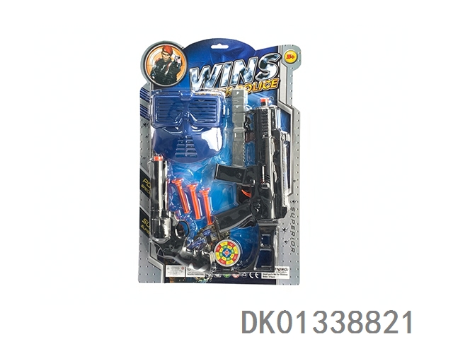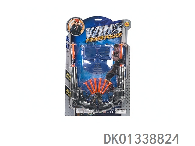 枪片警察套-EVA吸盘软弹冲锋枪乒乓球枪配面具、刀和圆靶
