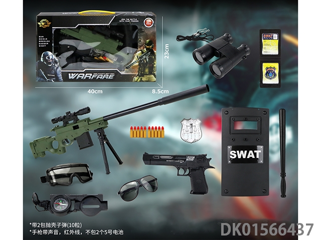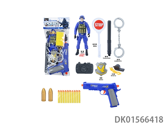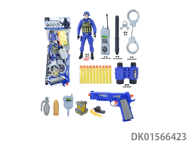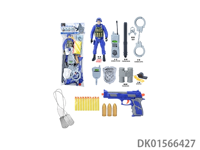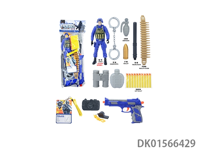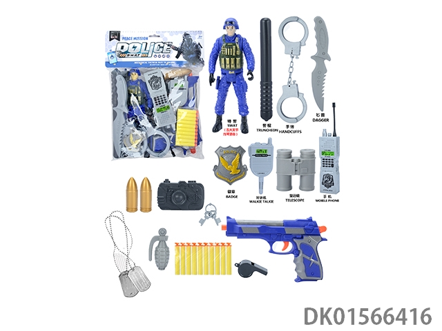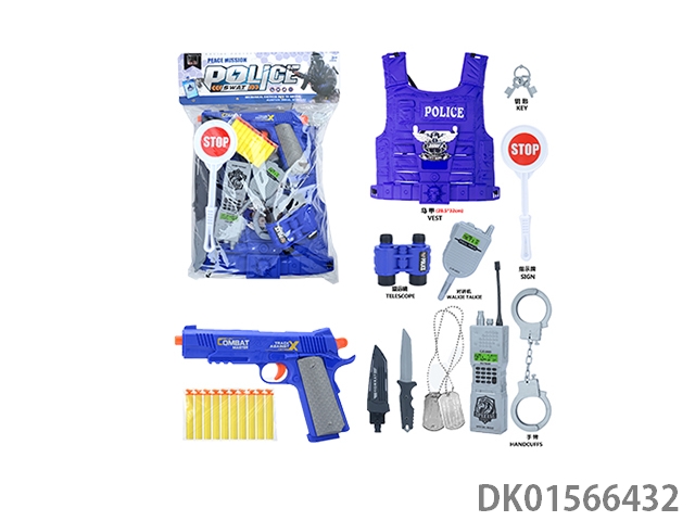 警察套(军人+对讲机+警棍+手铐+警徽+望远镜+口哨+吊牌+金子弹*3+五四软弹枪)