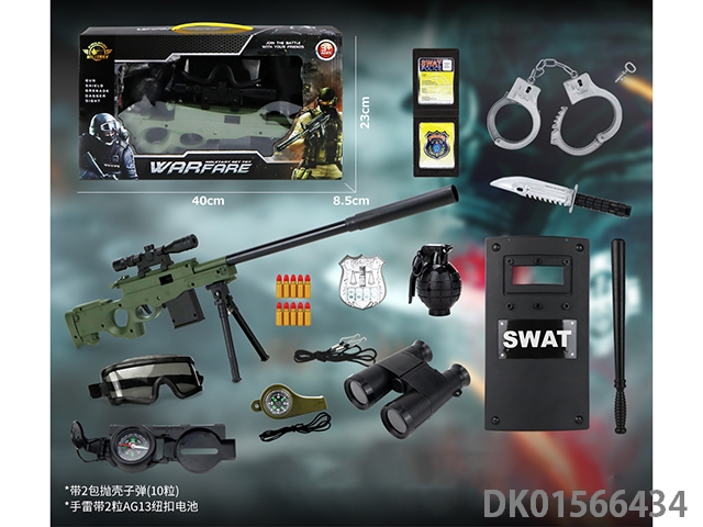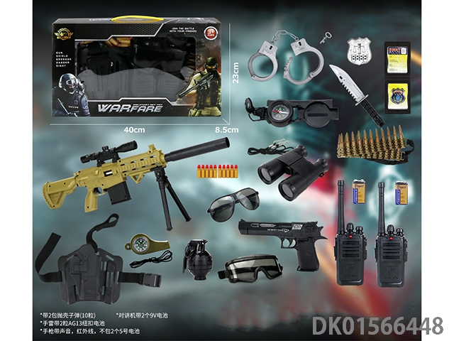 警察套(军人+警棍+手铐+刀+警徽+对讲机+望远镜+金子弹*2+相机+吊牌+手雷+口哨+五四软弹枪)