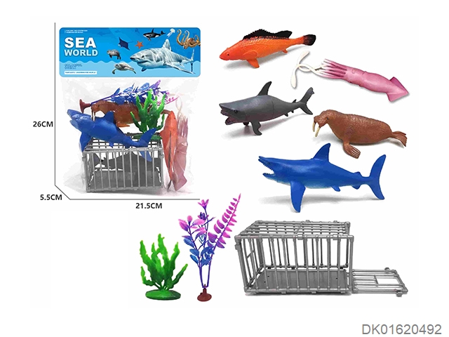 6只海洋动物 笼子场景