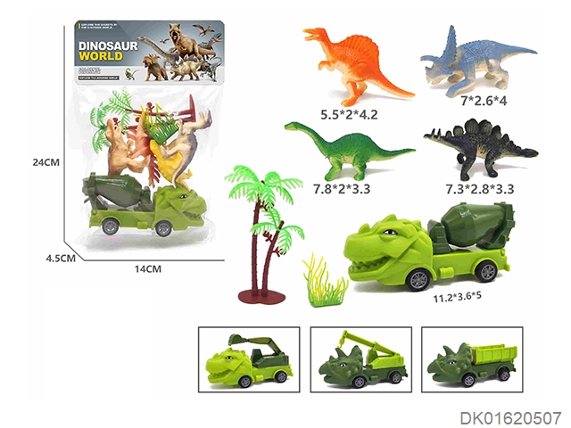 4实心恐龙+1恐龙回力车