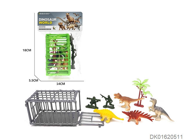 实心恐龙4只+笼子兵人