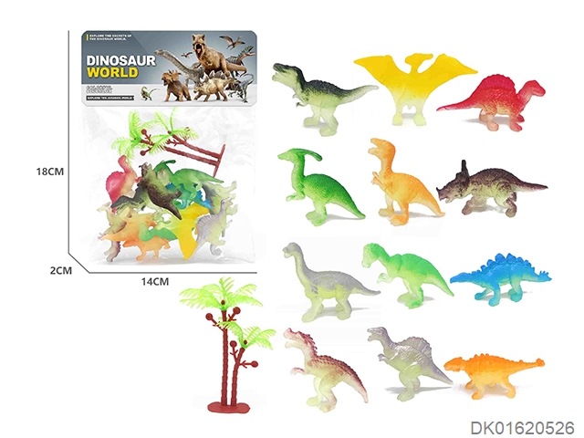实心 12只喷漆夜光小恐龙