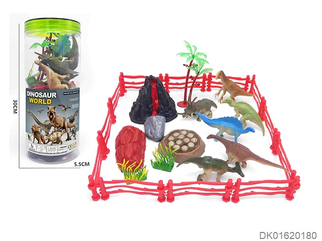 中圆筒 6只恐龙12围栏场景