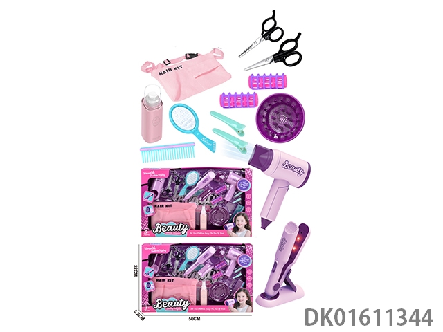Simulated hairdressing set (10 piece set with blow dryer headband)