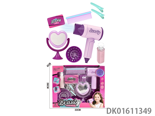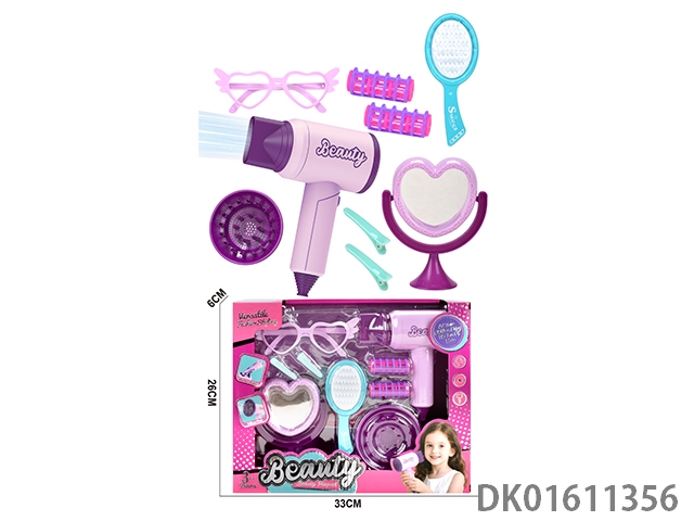 Simulated hairdressing set (9-piece set with blowing tube makeup mirror)