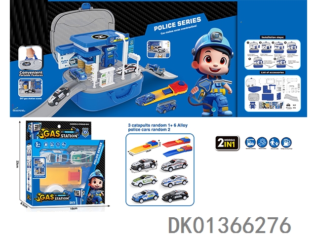 Police gas station storage box (2 slide alloy cars and 1 catapult)