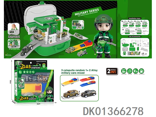 Military gas station storage box (2 sliding alloy cars and 1 catapult)