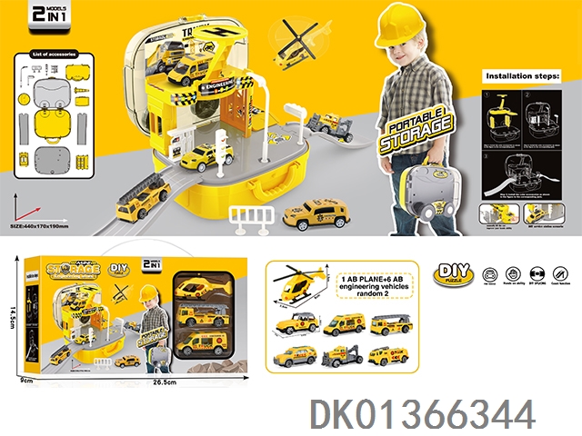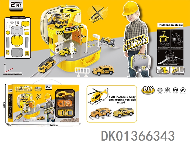 Engineering parking lot storage box (1ab aircraft, 2 sliding alloy cars)