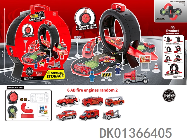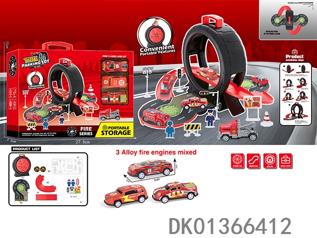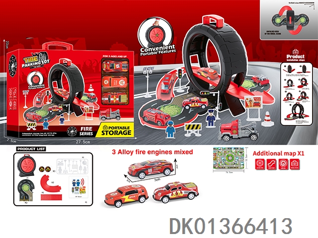 Fire tire scene storage box (3 metal cars and map)