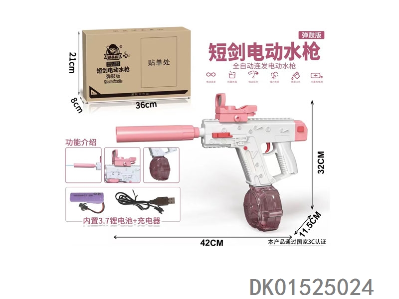 Short sword fully automatic continuous firing water gun (equipped with lithium battery) drum 434ml