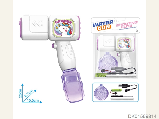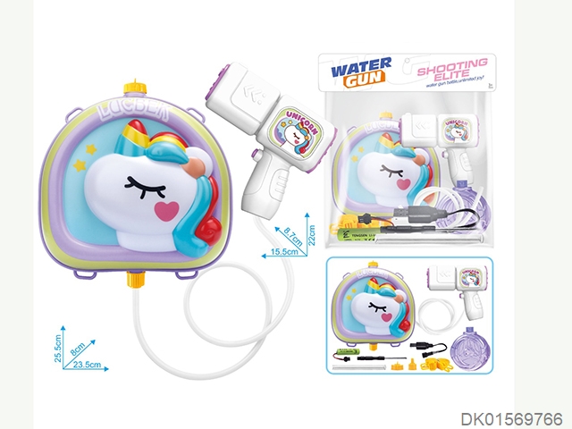 Rainbow horse water gun and backpack (usb charging cable, lithium battery, and screwdriver)