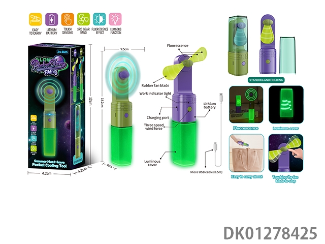 Glow in the night edition lipstick pocket touch usb silicone folding mini fan