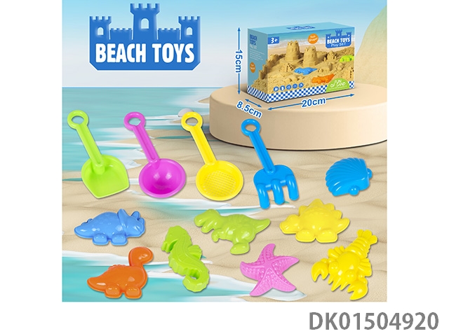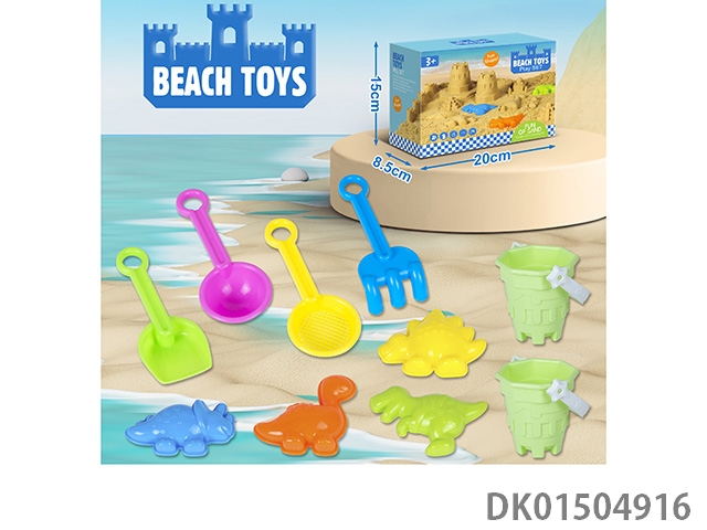 Boxed beach toys featuring ocean and dinosaurs